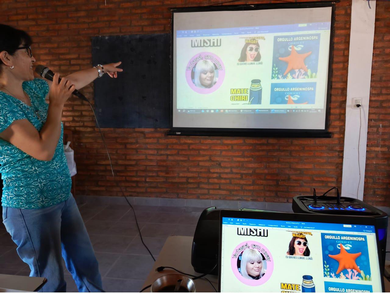 La primera fue un taller de “Lectura de textos quichuas y producción de stickers en quichua”, destinado a estudiantes de 4°, 5° y 6° año. En esta experiencia, los jóvenes trabajaron con textos narrativos en quichua y castellano, fortaleciendo el vínculo con la lengua escrita y elaborando luego stickers con frases en quichua para fomentar su uso cotidiano.