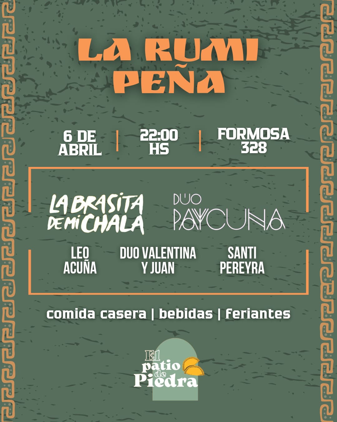 Los artistas que participarán son La Brasita de mi Chala, Duo Paycuna, Santiago Pereyra, Leo Acuña y Duo Valentina y Juan