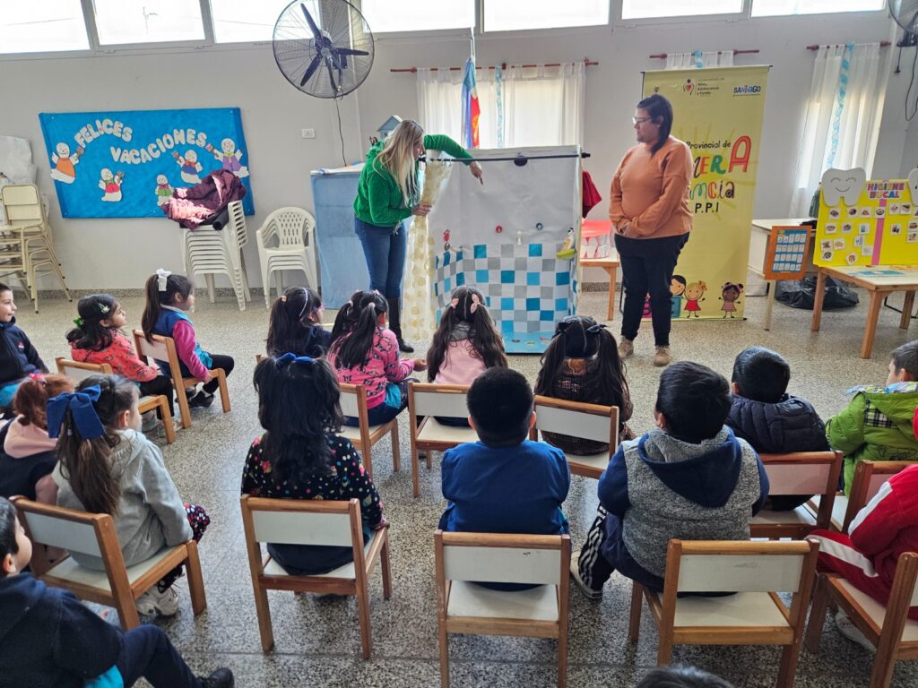 El equipo de Promoción de Derechos y de Primera Infancia de la Subsecretaría de Niñez, Adolescencia y Familia visitó el Jardín de Infantes N° 917 “Mama Antula” de la ciudad de La Banda para compartir con los niños y sus familias dos talleres centrados en el derecho a la salud.