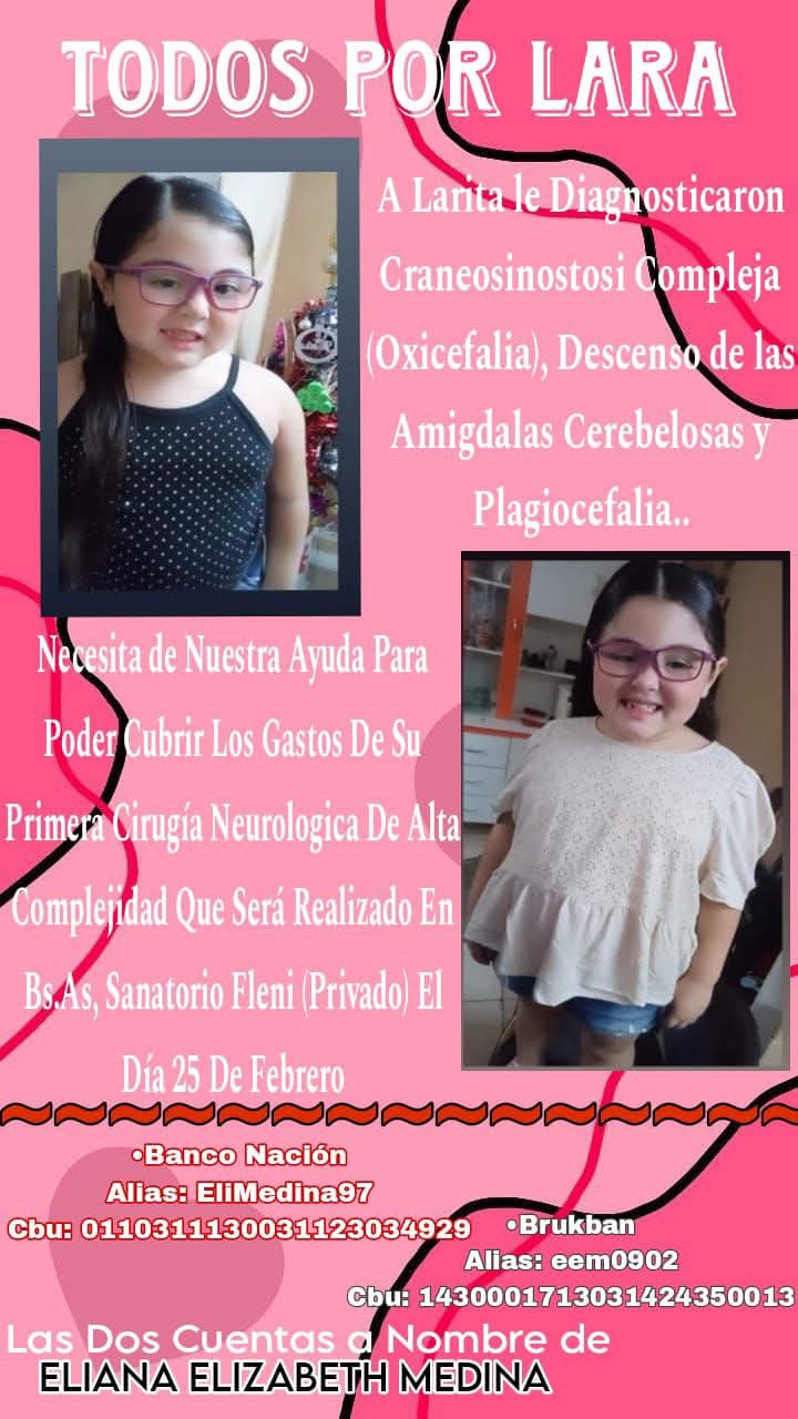 Como la obra social no cubre los gastos, el entorno de Lara pide colaboración a quienes lo puedan hacer.