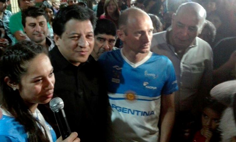 La recepción organizada por la Municipalidad, estuvo encabezada por el intendente José Bravo, miembros de la Asociación de Ciclismo de Beltrán, familiares, amigos y un gran número de vecinos que recibieron a la tricampeona, quien arribó visiblemente emocionada con lágrimas en los ojos.