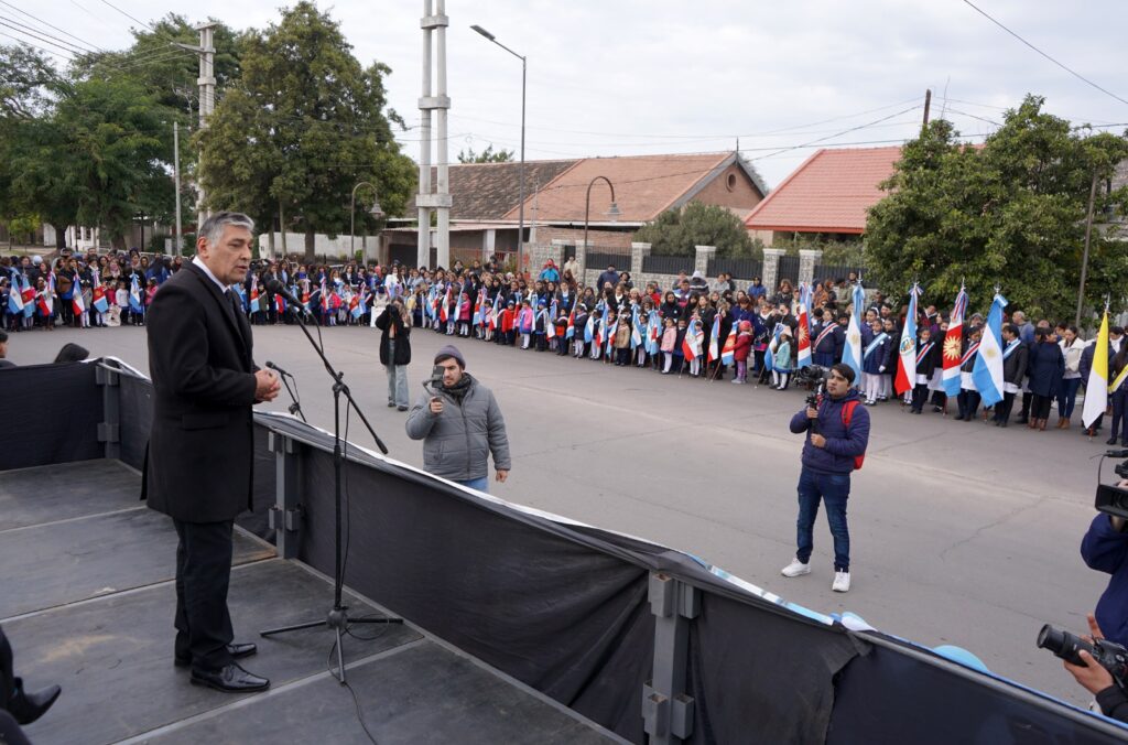 Posteriormente, se trasladaron a la Plaza Anibal de Jesus Palavecino, sobre Av. San Martín y 24 de Septiembre, donde se llevó a cabo el acto protocolar, que contó con la realización del desfile cívico, la recreación de la firma del acta de 9 de Julio y los números artísticos de las diferentes academias municipales y filiales.