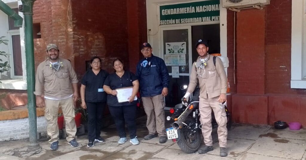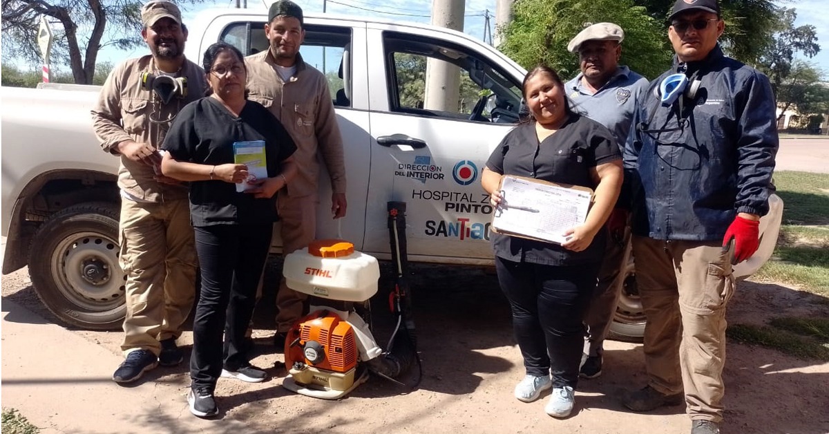 Personal del área de Atención Primaria de la Salud (APS) del Hospital de Pinto con el apoyo de la cuadrilla de la Dirección Provincial de Enfermedades Trasmisible por Vectores iniciaron un intenso operativo de prevención en distintos sectores de la ciudad, para combatir el mosquito trasmisor del dengue.
