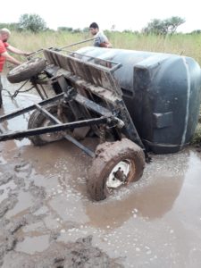 Camilo Schiel, un joven bombero, contó a Noticias del Estero que “salimos a las 10 de la mañana porque se quemaba una vivienda en la zona rural de Los Juríes, a 12 kilómetros aproximadamente. Dos de ellos estaban totalmente intransitables, llenos de agua y removidos pero de igual forma lo íbamos a hacer. Atrás llevábamos un tanque que se entierra y tumba, por lo que se rompió y se perdió todo el agua y no pudimos llegar a la vivienda, que se quemó entera”, explicó Camilo Schiel.