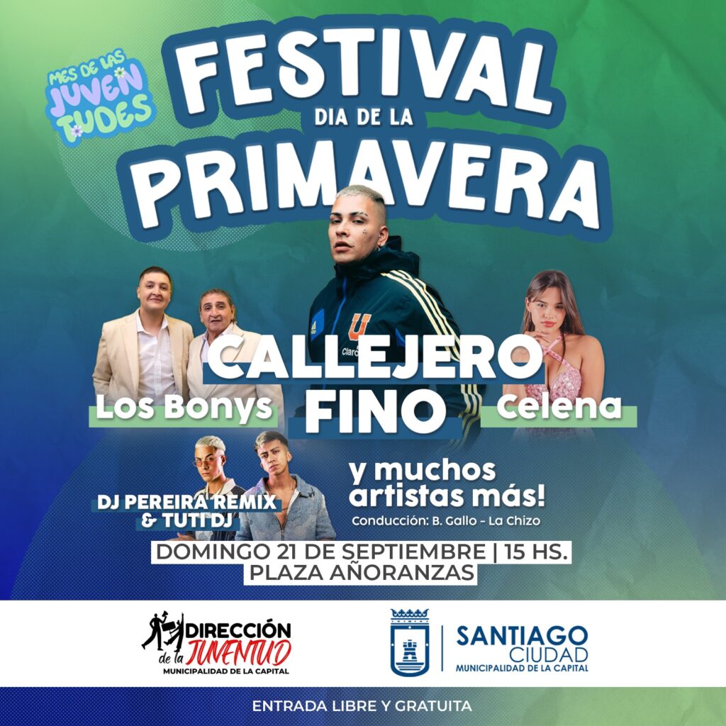 La Municipalidad de la Capital organizará un festival el próximo domingo 21, en el Día de la Primavera y de los Estudiantes con entrada libre y gratuita y con la presencia de destacados artistas de diferentes géneros musicales.