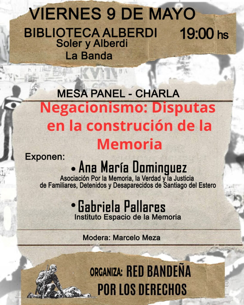 Con el acompañamiento de la municipalidad de La Banda, a través de la Dirección de Derechos Humanos, se realizará la primera Mesa Panel – Charla sobre, “Negacionismo: Disputas en la construcción de la memoria”.