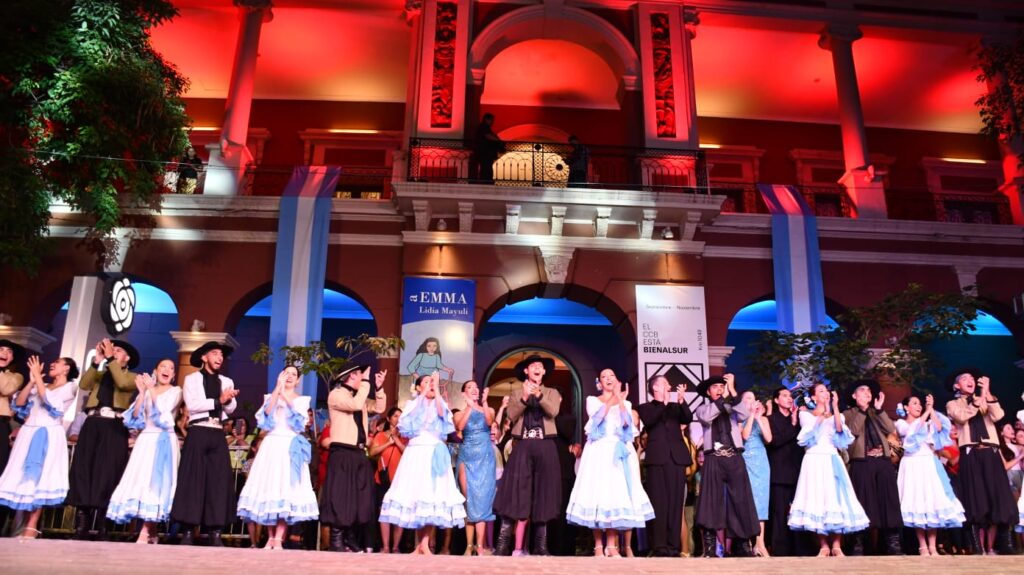 Se trató de una jornada que ofreció una diversidad de espectáculos, donde no faltaron la danza, la música y un despliegue de banderas argentinas desde los balcones del CCB, con la interpretación del Himno Nacional a cargo de integrantes de la Orquesta Infantil Juvenil del Ministerio de Educación y Coro Polifónico del CCB dirigida por el profesor Eduardo Bucci.