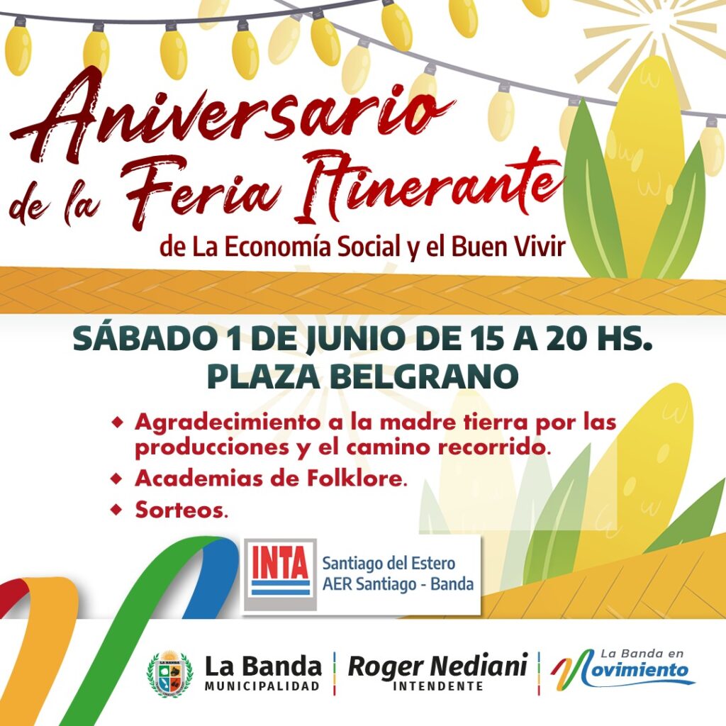 La Municipalidad de la ciudad de La Banda invita a la comunidad a la edición especial de la Feria Itinerante 2024 que se llevará a cabo el sábado el 1 de junio de 15 a 20 en la Plaza Manuel Belgrano.