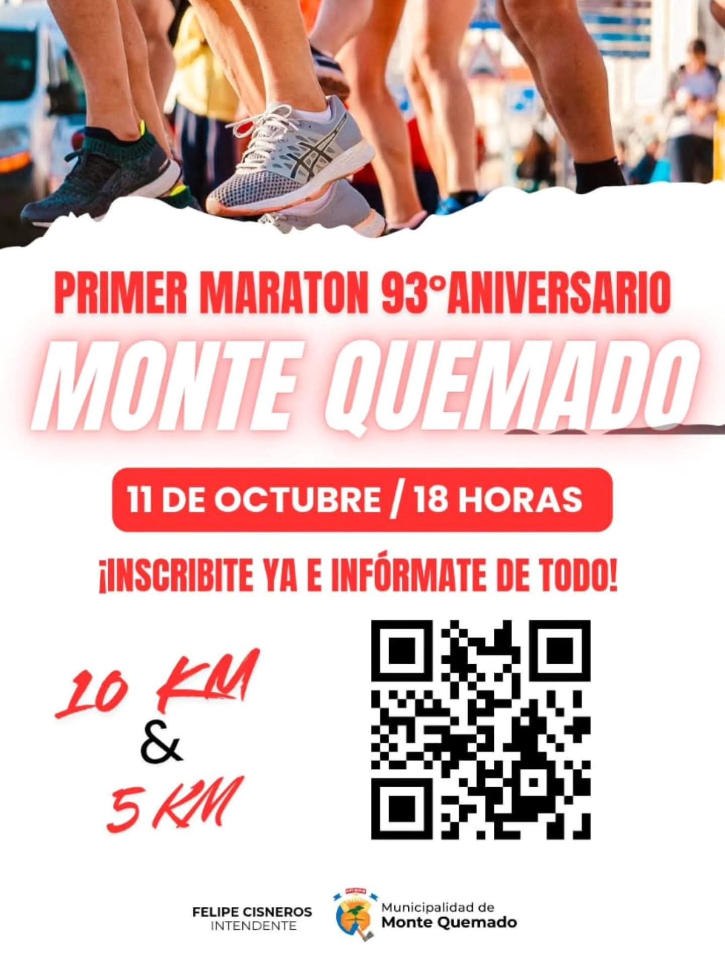 En el marco de las actividades programadas por la Municipalidad local por el 93° aniversario de la ciudad, se realizará el 11 de octubre, la Maratón “Monte Quemado Corre”.