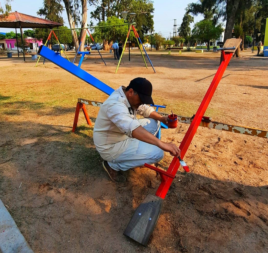 Empleados de la Municipalidad de Nueva Esperanza profundiza los trabajos de mantenimiento y acondicionamiento de plazas, espacios y paseos públicos, impulsados por el intendente Alberto Cazazola.