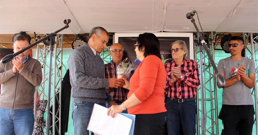 Los funcionarios participaron del acto de apertura del festival donde los organizadores Nilda Galván y Héctor Ramírez les entregaron presentes recordatorios.