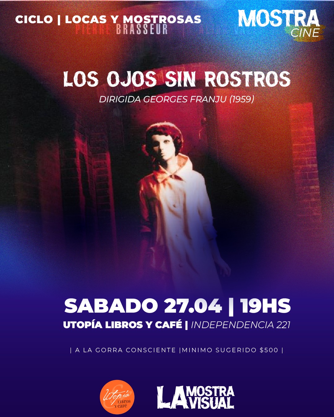 El próximo sábado 27 de abril en Utopía Libros (Independencia 221) a las 19 proyectarán “Los Ojos sin Rostros”, de 1959, dirigida por el aclamado director francés Georges Franju.