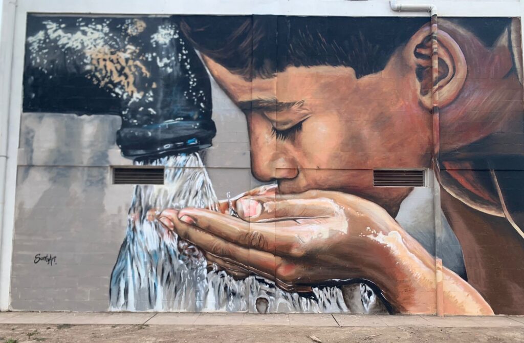 Como parte de los trabajos que se ejecutaron, el artista santiagueño Santy Exequiel Gómez realizó un enorme y vistoso mural sobre una de las paredes que busca dimensionar la importancia de la obra. A través de la realización del mural, se pretende además poner en valor la obra de infraestructura mostrando la capacidad y potencial creativo de jóvenes artistas santiagueños, permitiendo, de esta manera que el trabajo del diseñador santiagueño, darle un marco institucional a esta obra artística de envergadura.