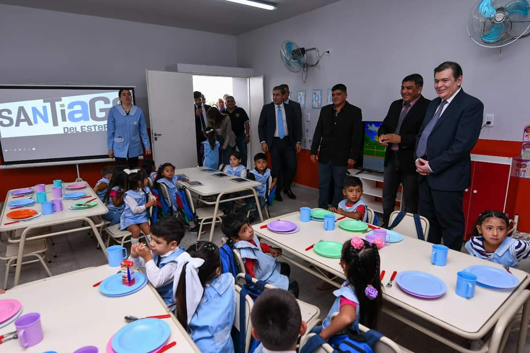 El gobernador Gerardo Zamora dejó inaugurado este lunes por la mañana el edificio totalmente renovado de la Escuela N° 384 de la localidad de Santa Lucía, en el departamento Moreno, y las nuevas instalaciones del Jardín de Infantes Anexo N° 400.