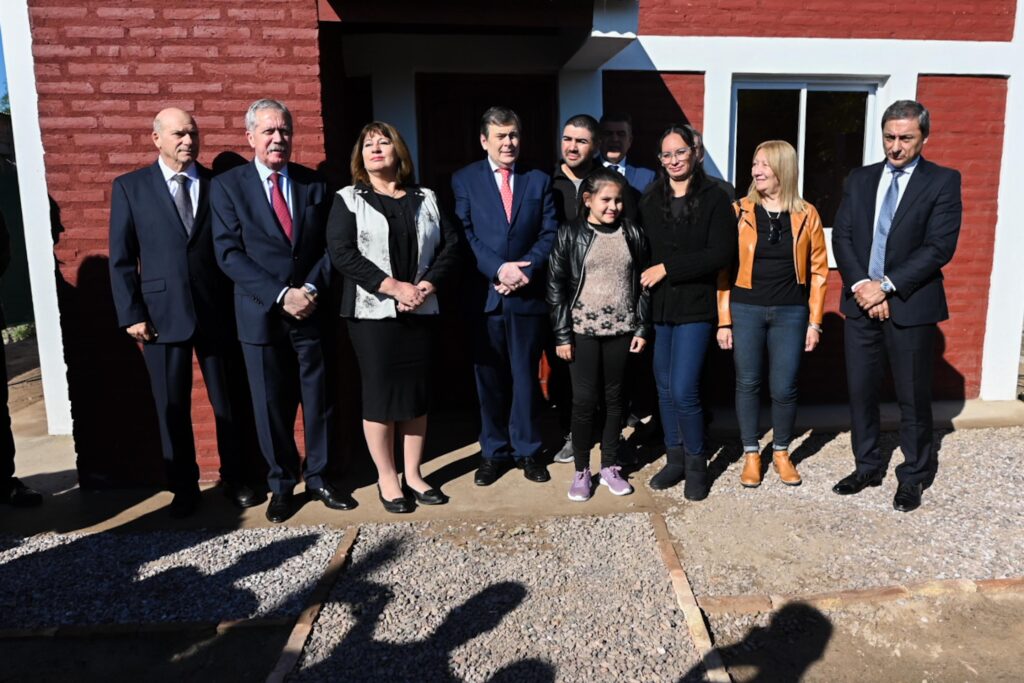 Las autoridades fueron recibidas por la intendente interventora de Beltrán, Miriam Padilla, y el intendente electo, Victorio Formini, quienes participaron en primera instancia, en el domicilio de Gabriel Chávez, de la entrega de las 59 viviendas sociales a familias de Beltrán y de parajes vecinos.