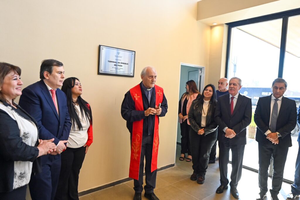 Posteriormente se hizo el corte de cintas de la nueva terminal de ómnibus de Beltrán ubicada a la vera de la ruta nacional 34, con 7 andenes, una cubierta anexa a la playa de maniobras; iluminación interior y exterior; parquizado y cerramiento perimetral de seguridad.