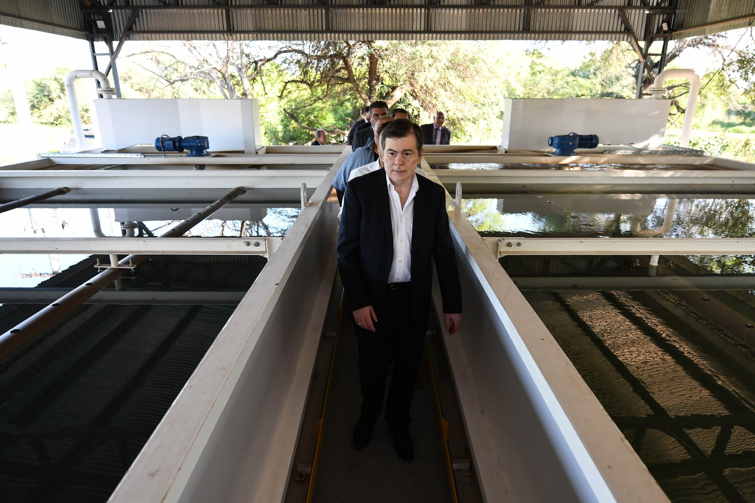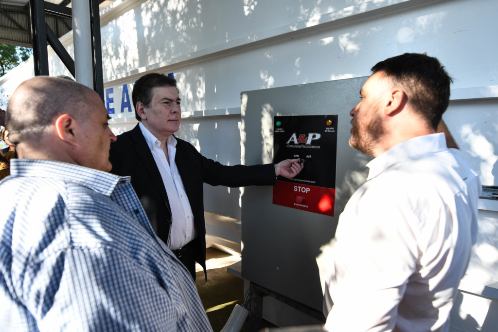 Luego, la comitiva se trasladó a la planta potabilizadora totalmente automatizada que fue renovada y su capacidad operativa cuadruplicada para satisfacer la actual demanda de los pobladores, tanto de Los Quiroga, como de otras comunidades de esta parte del departamento, como también con la posibilidad de seguir sumando conexiones sin afectar la calidad del servicio.